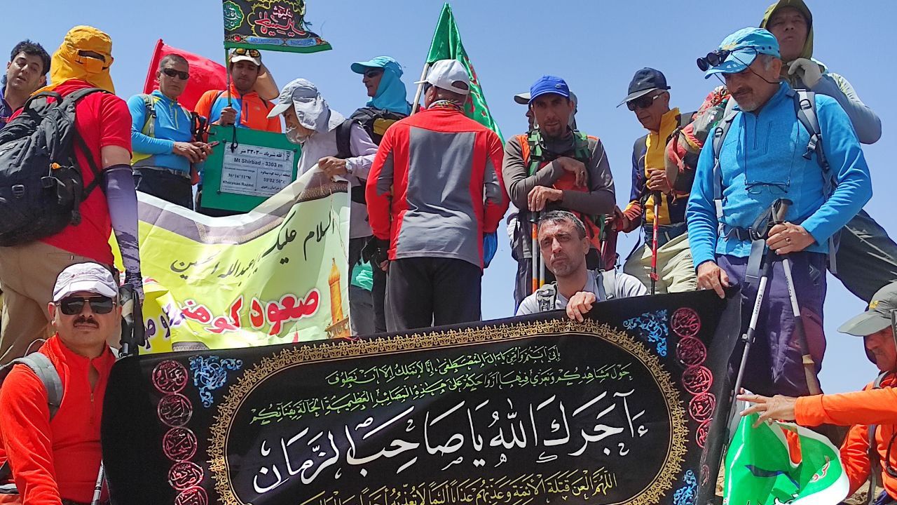 اهتزاز پرچم آقا اباعبدالله الحسین (ع) بر فراز قله «شیرباد»
