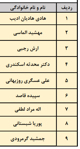 اسامی آقایان و بانوان اعضاء ستاد دماوند: هادی