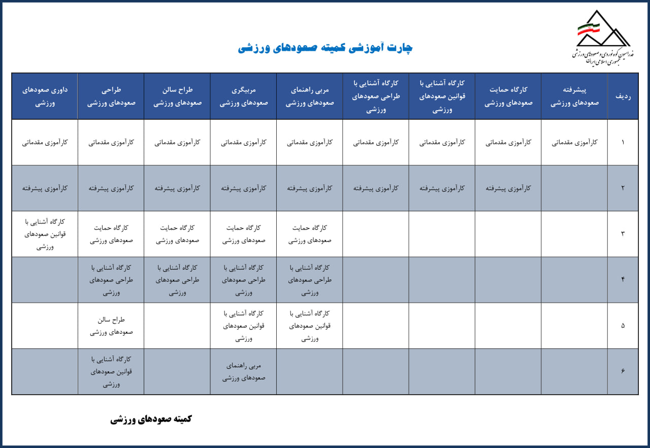 ساختار (چارت) آموزشی کمیتهی صعودهای ورزشی را از طریق دو فایل پیوست دریافت و ملاحظه نمائید:
