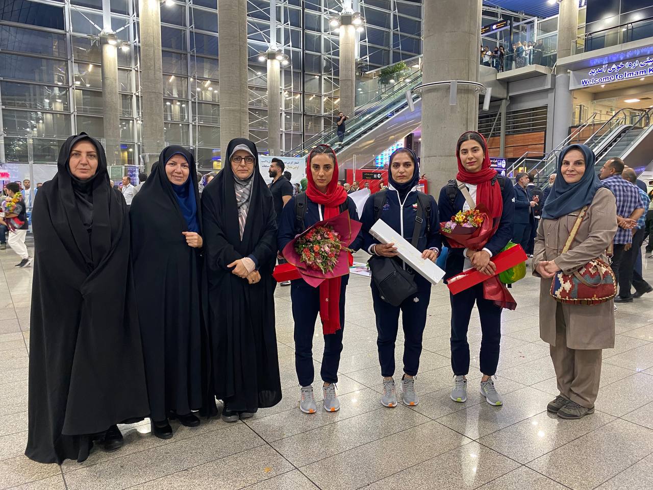 این تیم در بدو ورود، با استقبال «محمد پولادگر» معاون توسعه ورزش قهرمانی وزارت ورزش، «کاظمیپور» معاون توسعه ورزش بانوان، «زارعی» رئیس فدراسیون و اعضای هیئت رئیسه فدراسیون، خانواده، اعضا و جامعه کوهنوردی و صعودهای ورزشی وارد کشور شد.