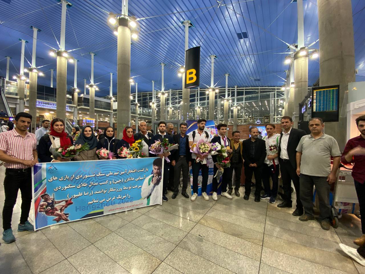 تیم ملی سنگنوردی ایران با کسب مدال طلای بازیهای آسیایی ماده سرعت مردان توسط «رضا علیپور» صبح امروز وارد فرودگاه امام خمینی(ره) تهران شدند.