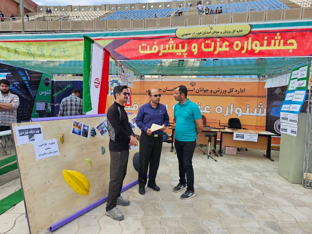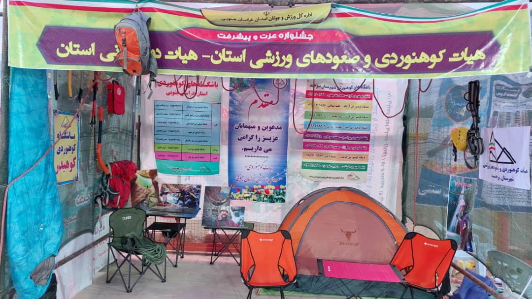 هیئت کوهنوردی و صعودهای ورزشی خراسان جنوبی با برپایی غرفه تجهیزات کوهنوردی، غرفه دیواره و تجهیزات سنگنوردی، غرفه ساخت دیواره گیرههای سنگنوردی و با شرکت پرشور کوهنوردان در رژه مراسم افتتاحیه، شکوه و همراهی و همدلی باشگاهی ورزشکاران را نشان داد.
