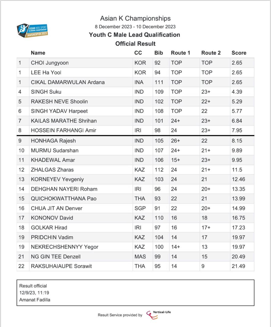 در ادامه رقابتهای نونهالان و نوجوانان قهرمانی آسیا که در هندوستان جریان دارد، «رادمان تاجیک» و «امیر حسین فرهنگی» در مواد لید و بولدر به مرحله نهائی رده سنی نوجوانان راه یافتند.