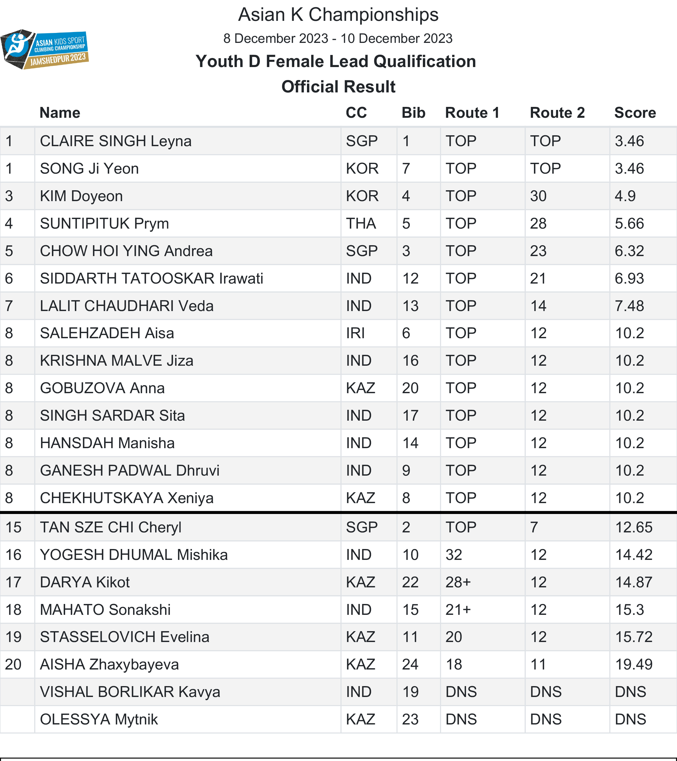🔹راهیابی «آیسا صالح زاده» به مرحله نهایی ماده لید نوجوانان D