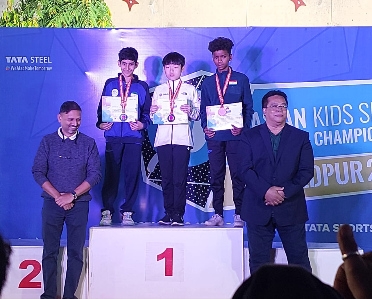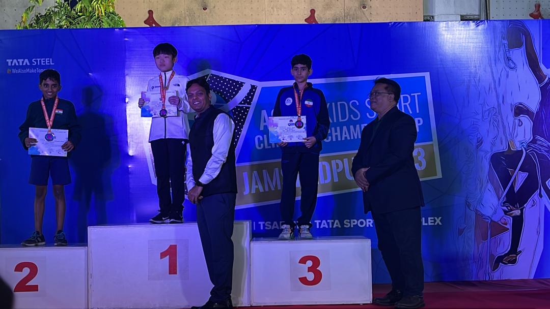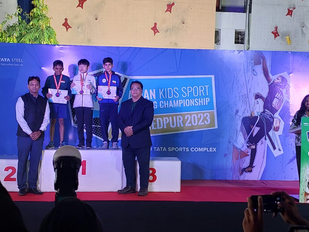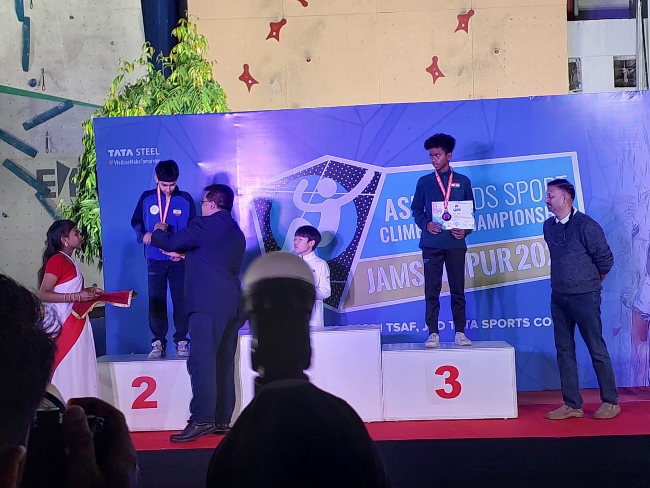 گزارش تصویری / سکوی اهدای مدال مسابقات سنگنوردی نونهالان و نوجوانان قهرمانی آسیا به میزبانی هندوستان و کسب دو مدال نقره و برنز توسط «رادمان تاجیک» در دو ماده «بلدرینگ» و «لید» برای تیم ایران.
