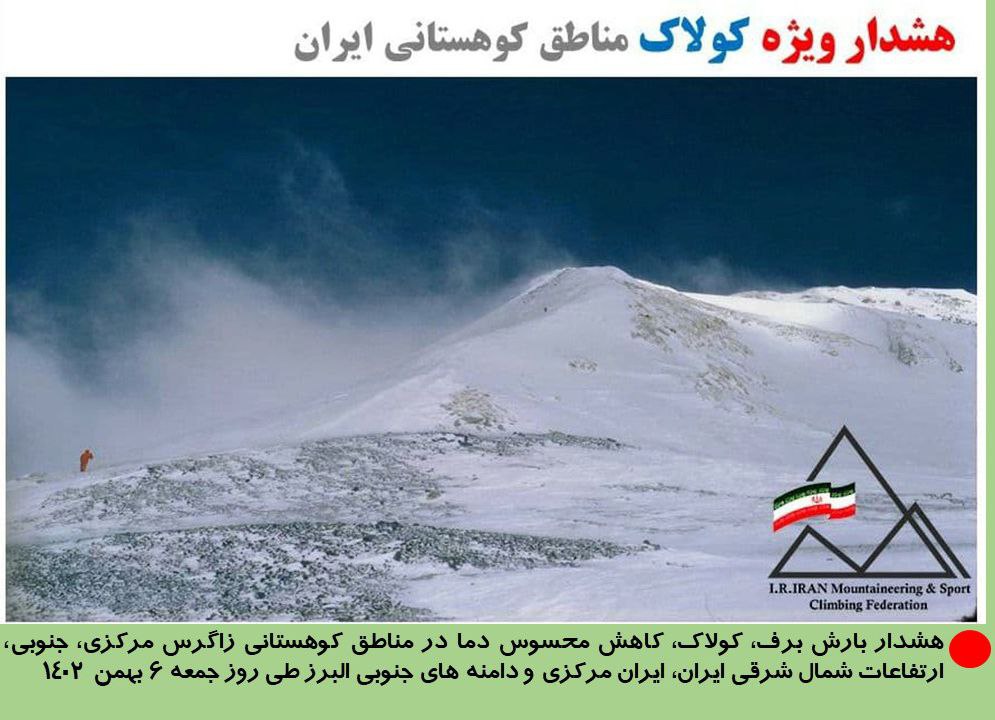🔸منبع: استنتاج شده از هشدارهای صادره سازمان هواشناسی کشور توسط بخش هواشناسی فدراسیون کوهنوردی و صعودهای ورزشی