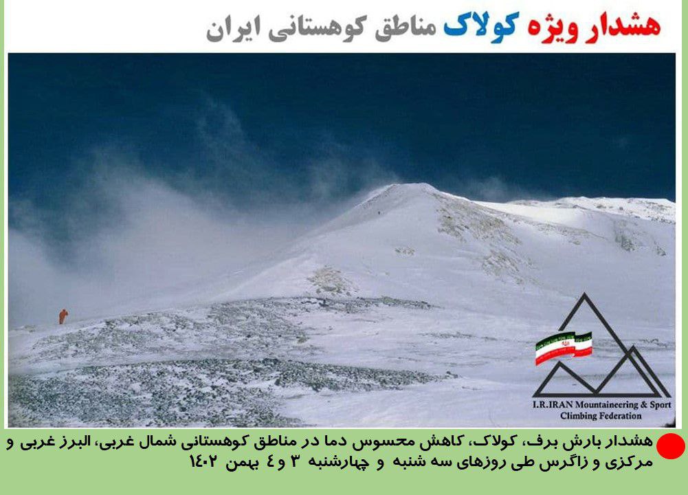 پیام هشدار کمیته جستجو و نجات، ایمنی و آموزشی کوهستان ویژه پیشگیری از حوادث و سرمازدگی کوهنوردان