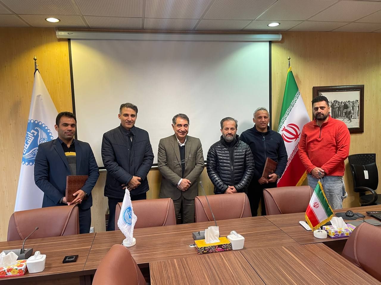 در این نشست آقایان، دکتر نوری مدیر کل تربیت بدنی دانشگاه تهران، دکتر کریم زاده معاونت دانشجویی دانشکده، شکری کارشناس و مسئول ورزش دانشجویی، مجید حسین پور مسئول امور دانشگاهی فدراسیون، محمود هاشمی کارشناس امور دانشگاهی فدراسیون حضور داشتند.