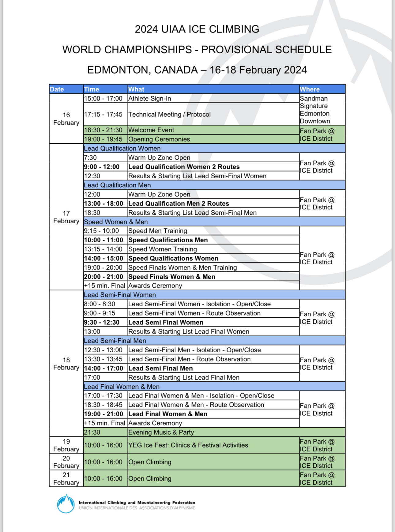 جدول زمانبندی مسابقات یخنوردی قهرمانی جهان / ادمونتون کانادا پیوست است.