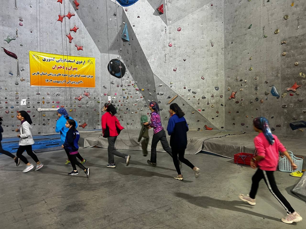 اردویتیم ملی سنگنوردی ماده سرعت اعزامی به بازیهای ساحلی آسیا در سانیای چین، در مجموعه کمپ تیمهای ملی سنگنوردی ورزشگاه کبکانیان تهران