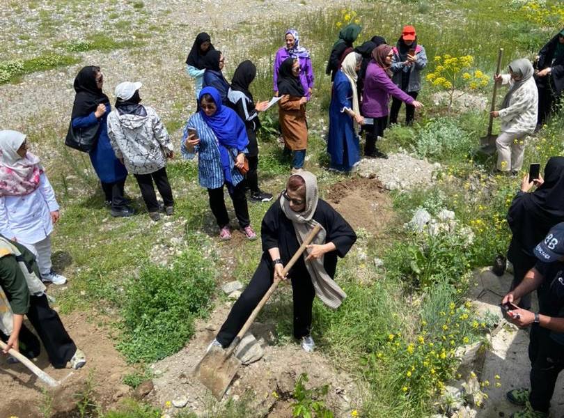 -مراسم کاشت درخت یادبود در محوطهی قرارگاه ونداربن به نام هیمالیانورد؛ «افسانه حسامی فر» و بانوان مربی تأثیر گزار سرار کشور.