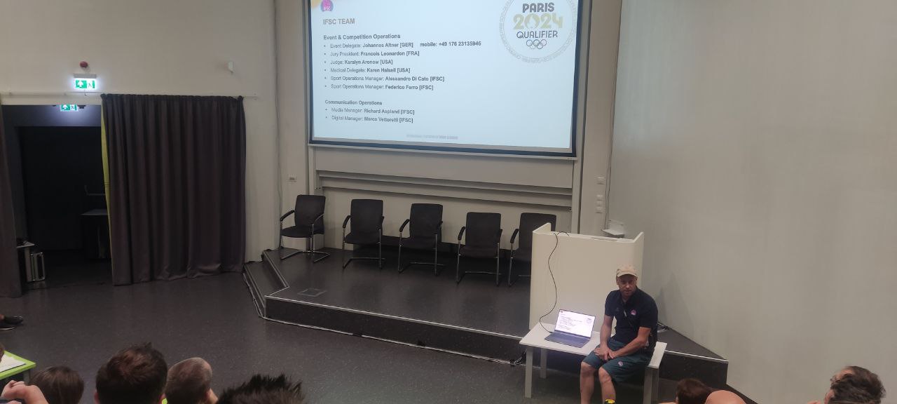 این مسابقات با جلسه تمرین و جلسه فنی در شهر بوداپست آغاز شد. «الناز رکابی» در مواد لید و بولدر و «رضا علیپور» با مربیگری «مرتضی محمدی» در ماده سرعت جهت کسب سهمیه المپیک پاریس تلاش خواهند کرد.