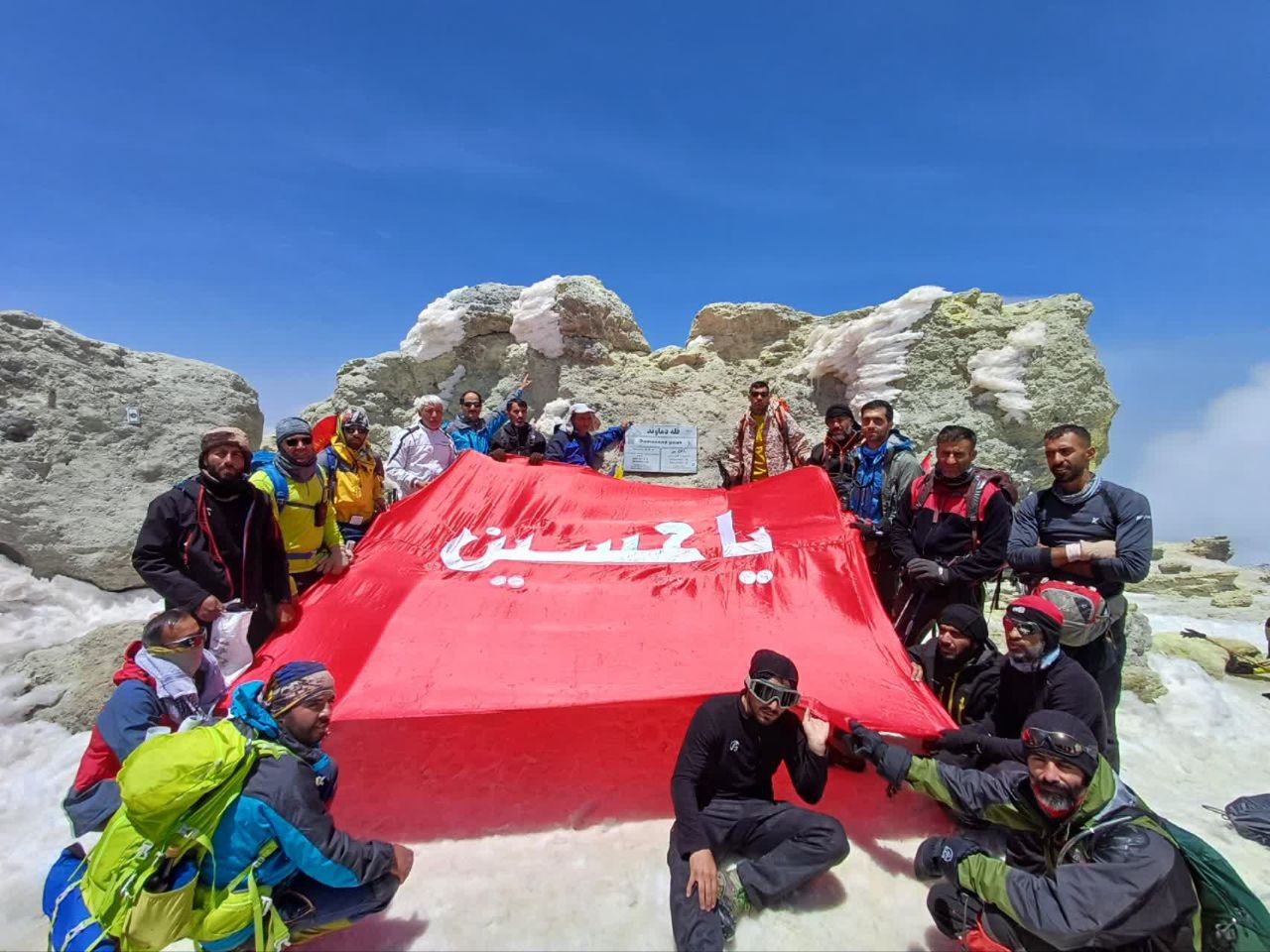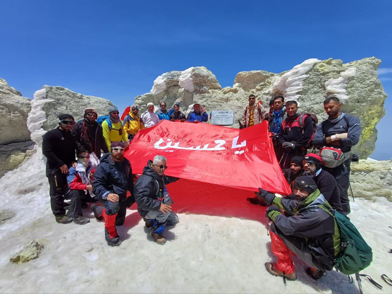 در اقدامی نمادین و فرهنگی ورزشی؛ 72 کوهنورد از استانهای مختلف، پرچم «یاحسین»(ع) را بر فراز بام ایران؛ قله «دماوند» به اهتزاز درآوردند.