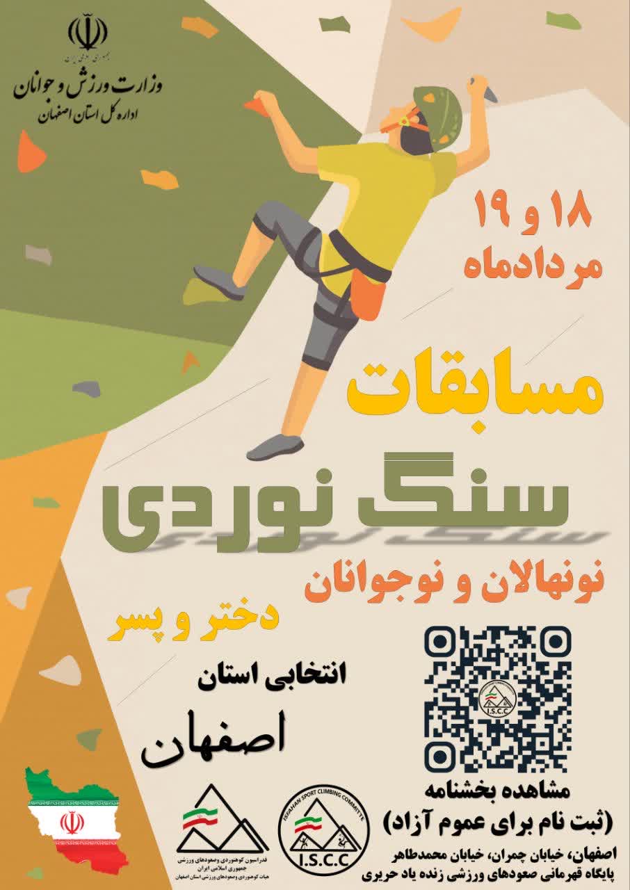 فراخوان مسابقات سنگنوردی نونهالان و نوجوانان استان اصفهان / ۱۸ و ۱۹ مرداد ۱۴۰۳