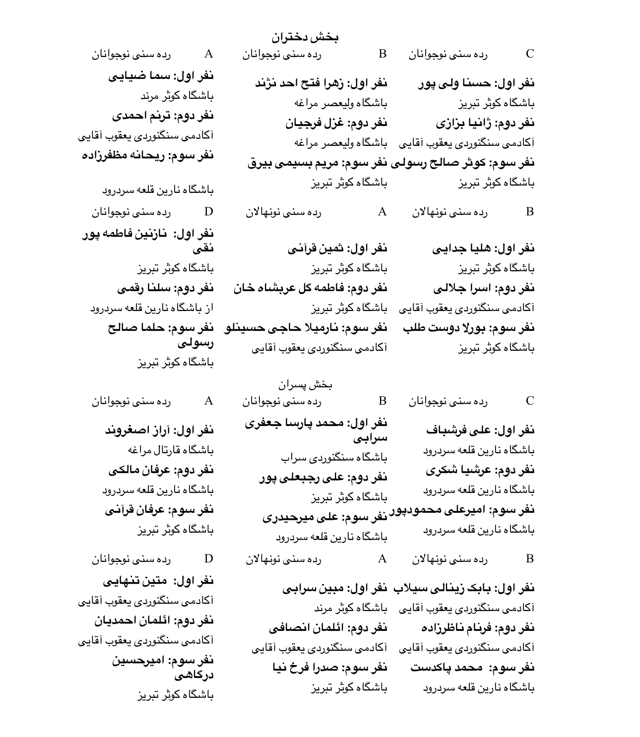 جداول اسامی نفرات برتر و عکسها را در ادامه ملاحظه نمائید: