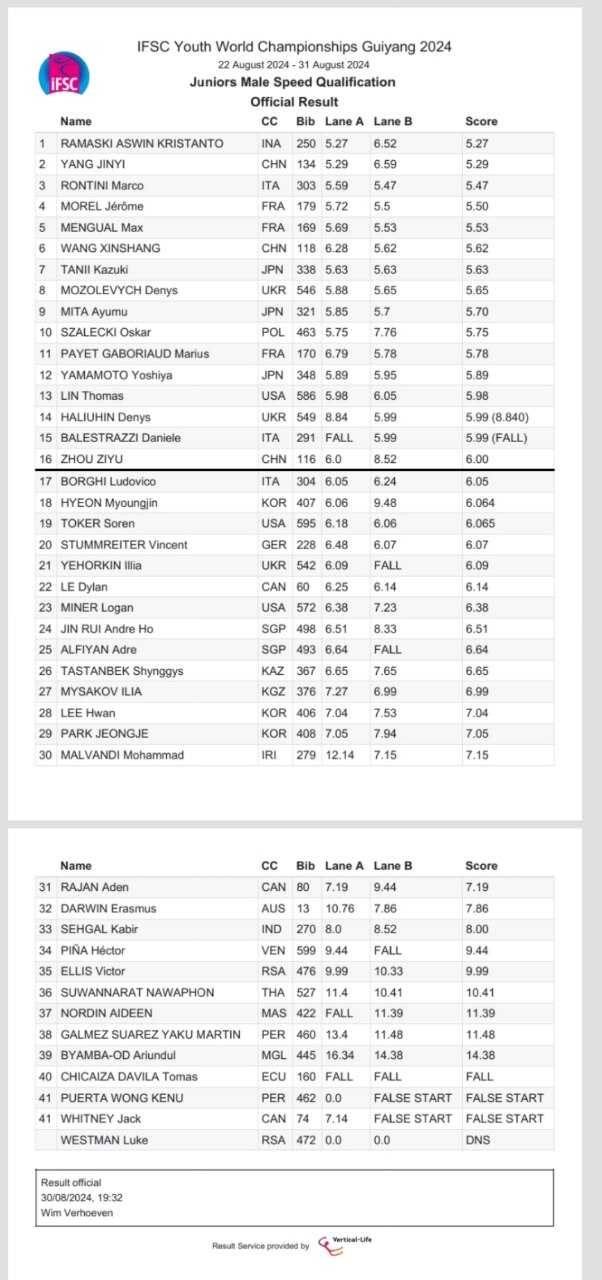 در این ماده؛ در بخش پسران و در رده سنی جوانان، «محمد ملوندی » با رتبه ۳۰ از راهیابی به مرحله نهایی بازماند.