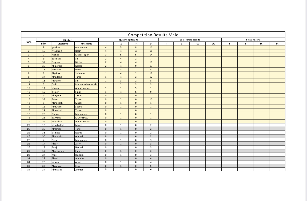 لازم به ذکر است در مرحله نیمه نهایی ۲۱ ورزشکار از مجموع ۳۷ نفر حضور دارند.