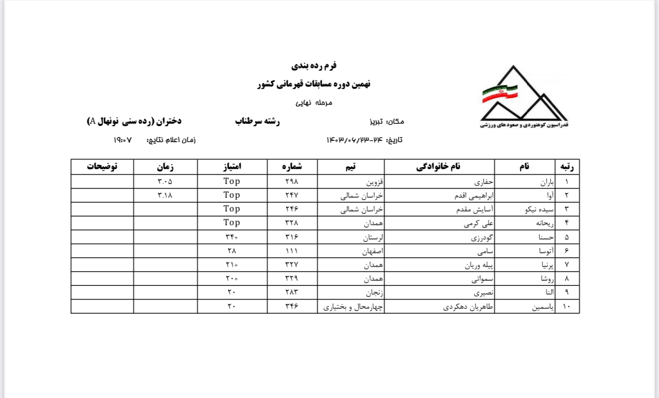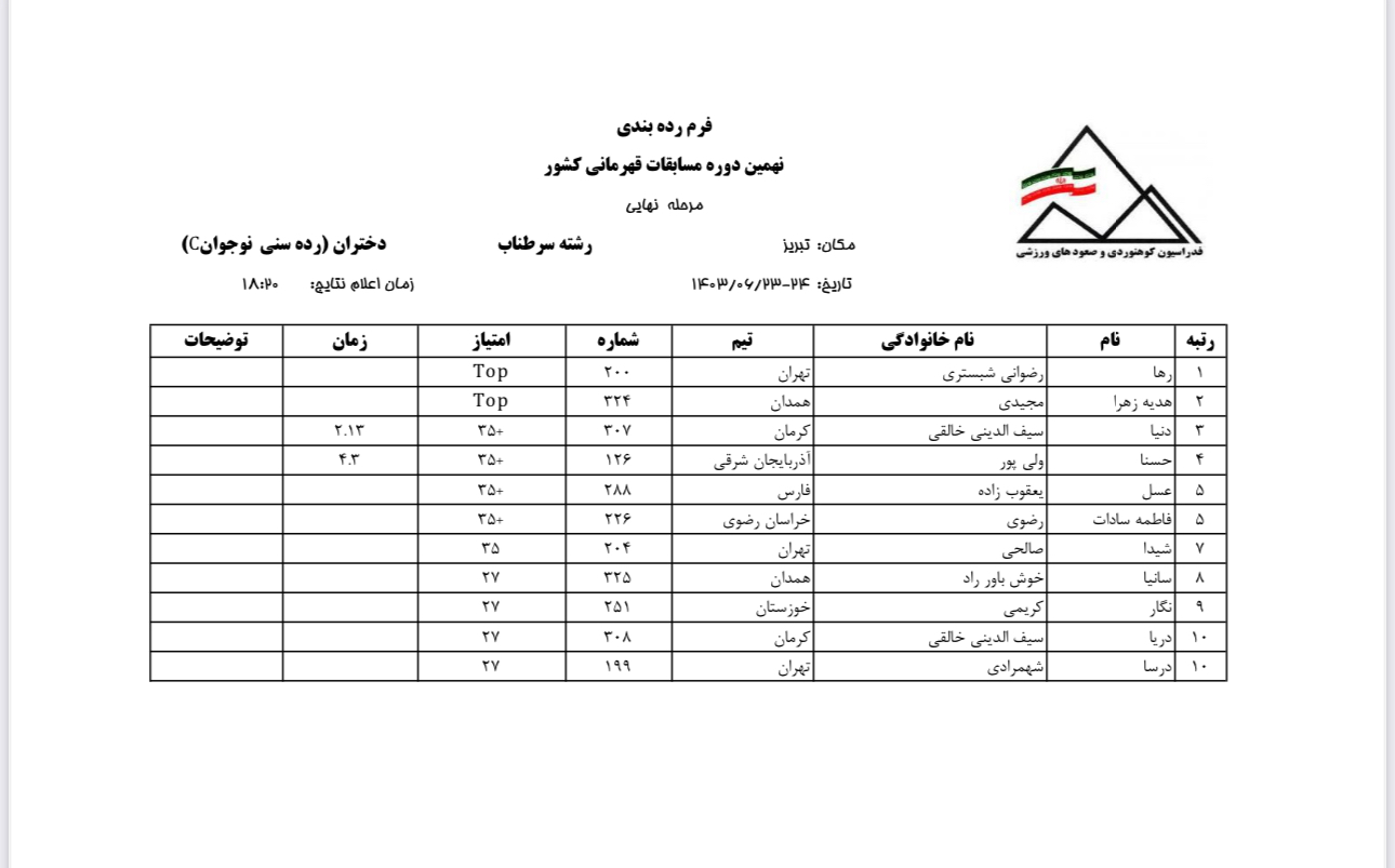 اسامی پذیرفته شدگان دوره مربیگری درجه ۳ یخ نوردی و درای تولینگ