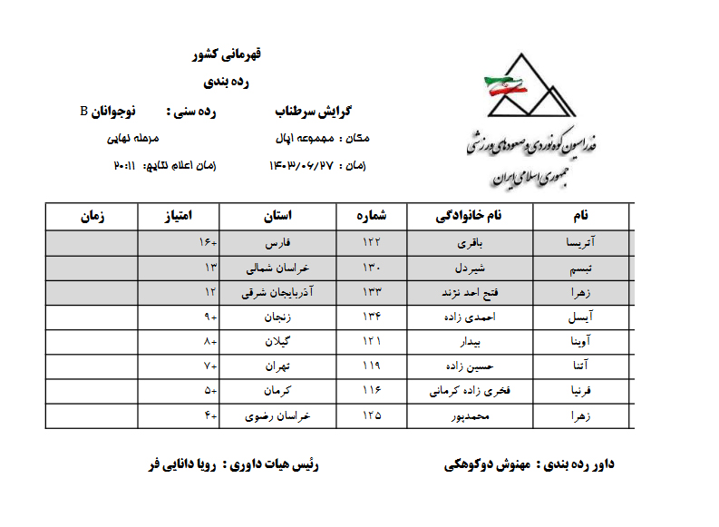 🔹 نتایج مرحله نهائی سرطناب جوانان: