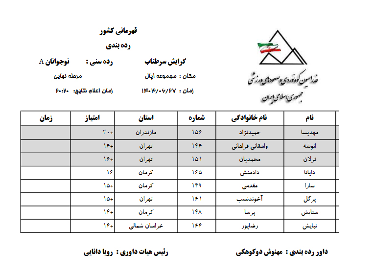 🔹 نتایج مرحله نهائی سرطناب نوجوانان A: