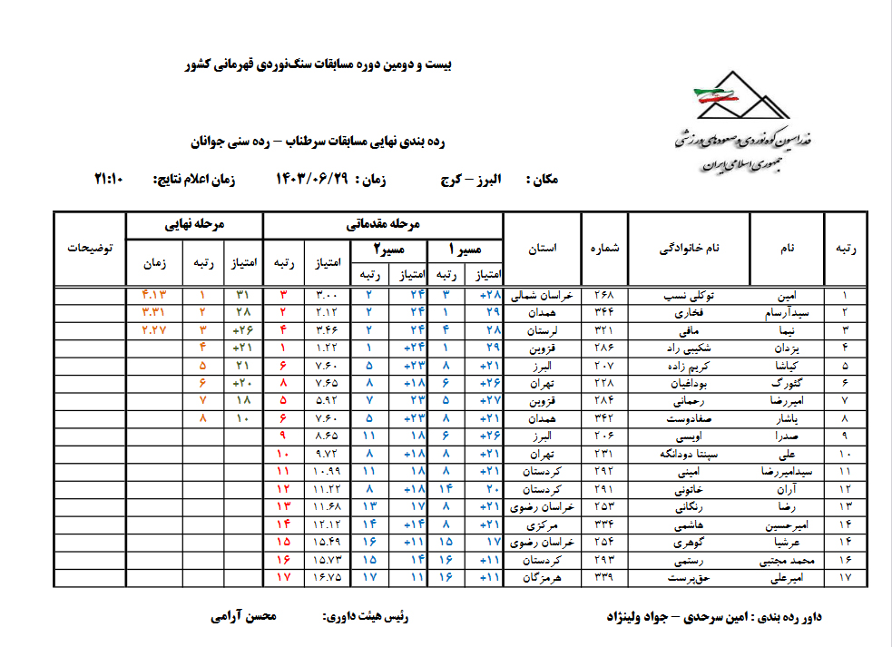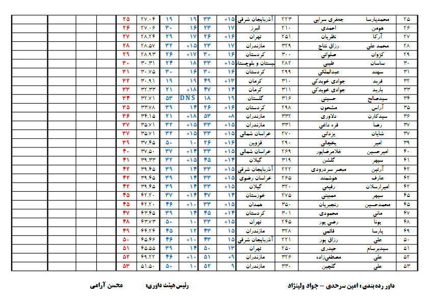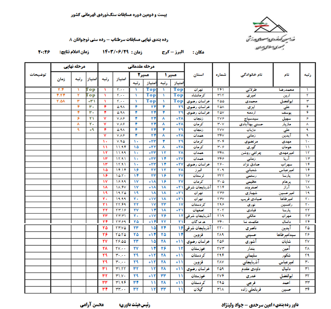 نتایج بیست و دومین دوره مسابقات سنگنوردی قهرمانی کشور، رده سنی نوجوانان A, B و جوانان، ماده سرطناب (پسران) / استان البرز- باشگاه اوپال