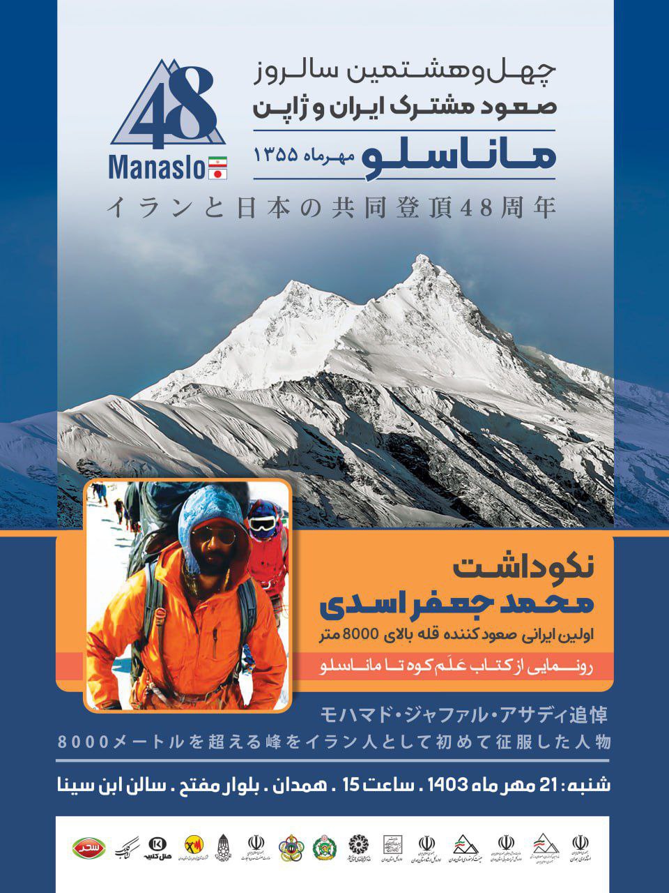 چهل و هشتمین سالروز صعود مشترک ایران و ژاپن «ماناسلو 1355» و نکوداشت «محمدجعفر اسدی» اولین ایرانی فاتح قله بالای 8 هزارمتر؛ شنبه 21 مهر 1403
