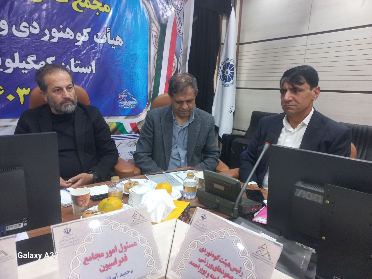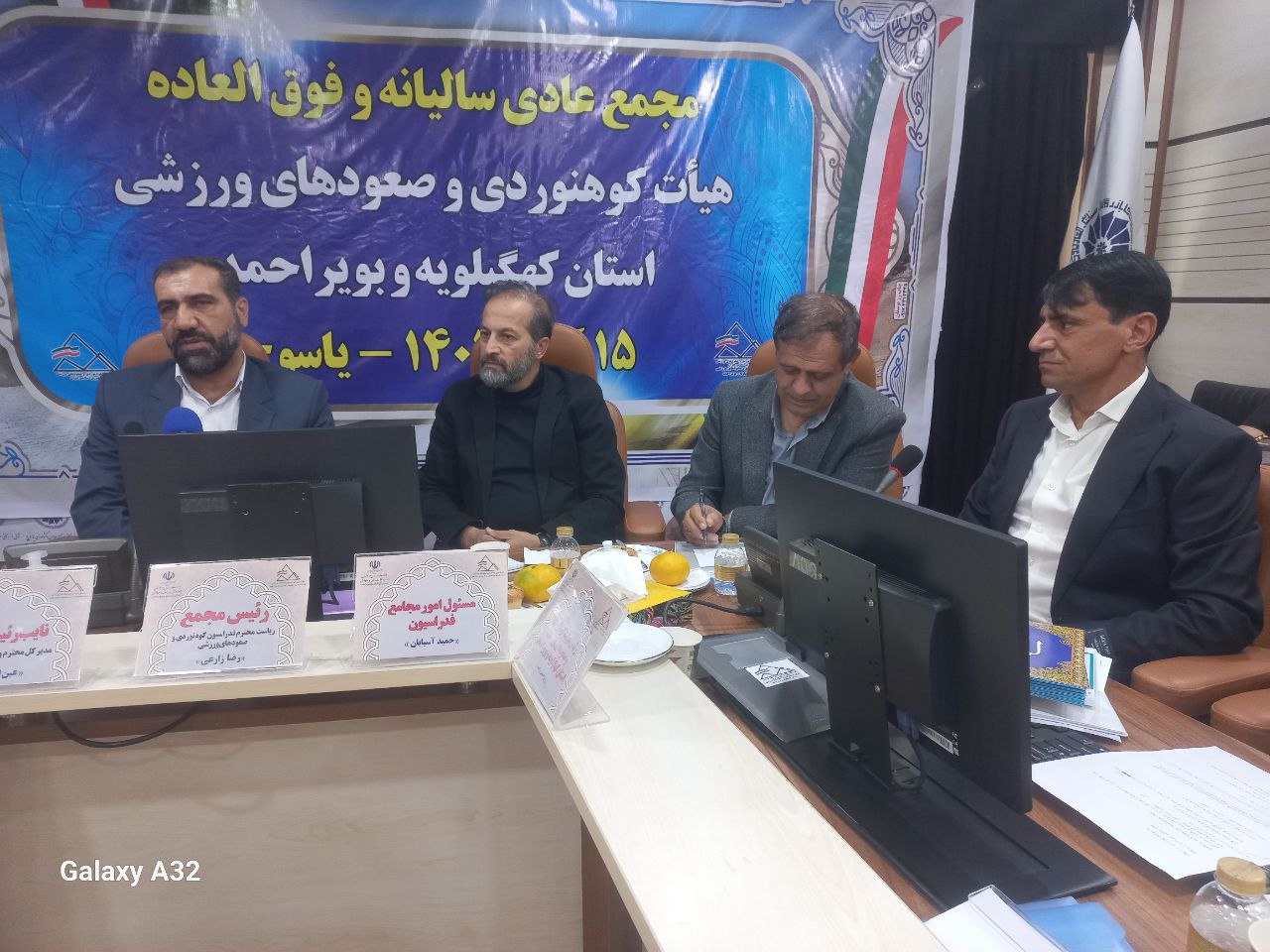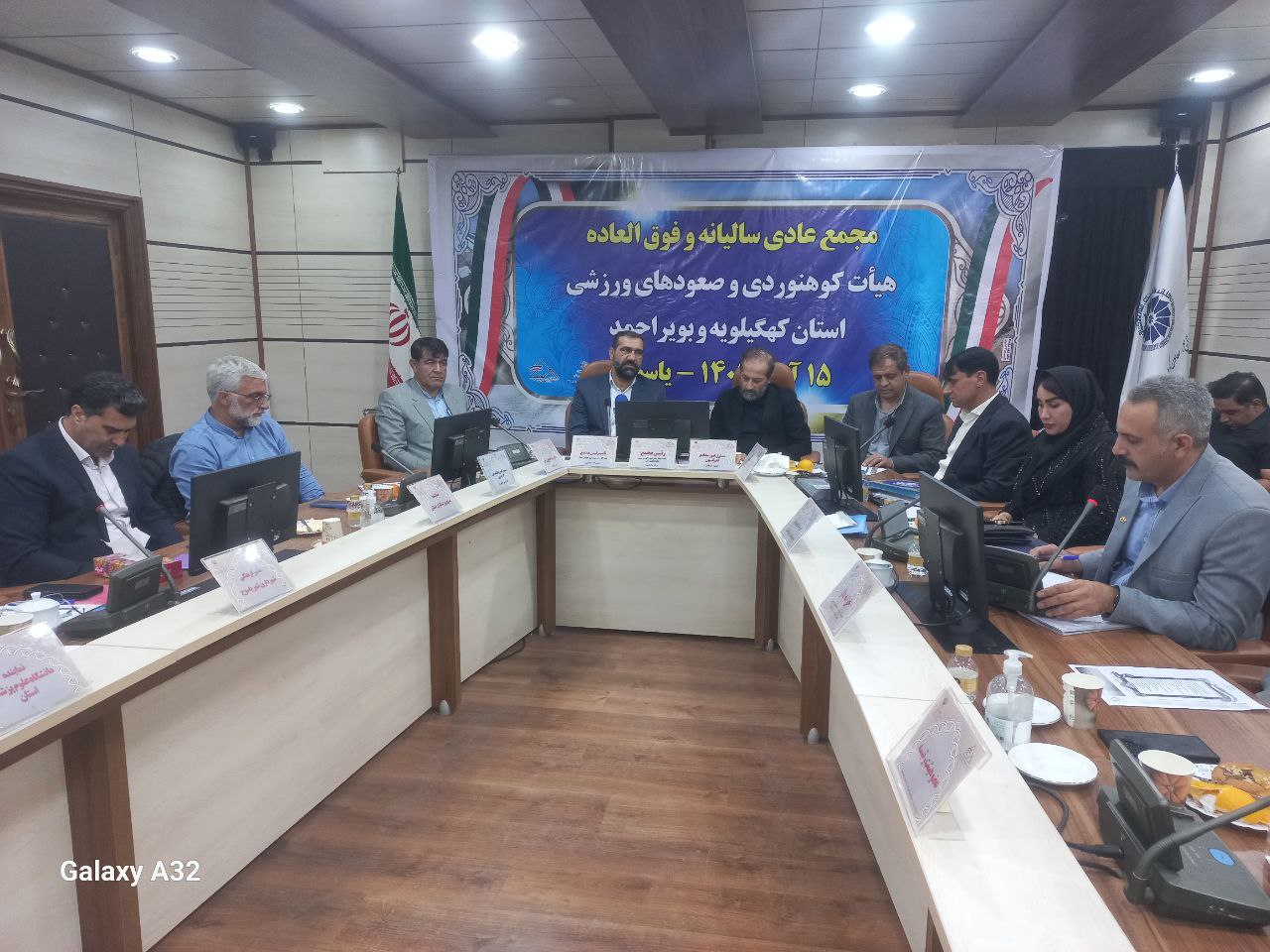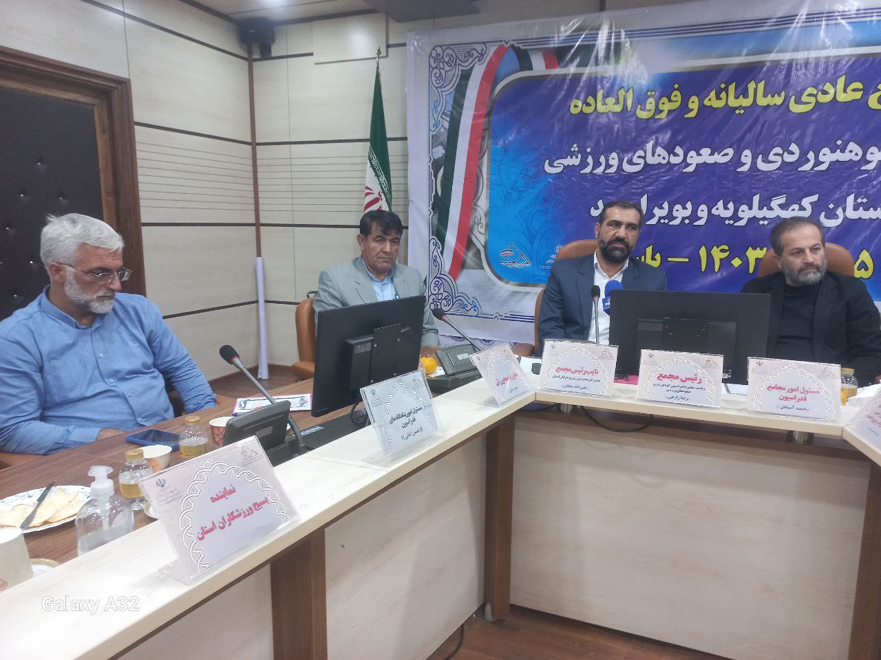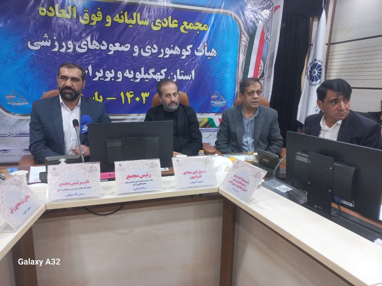 مجمع عمومی سالیانه هیئت کوهنوردی و صعودهای ورزشی استان «کهگیلویه و بویراحمد» سه شنبه ۱۵ آبان ماه ۱۴۰۳ با حضور «رضا زارعی» رئیس فدراسیون «حمید آسیابان» مسئول امور مجامع فدراسیون، «حسین امانی» مسئول کمیته پناهگاهها فدراسیون، «عین اله دهقان» مدیر کل ورزش و جوانان استان، معاون توسعه ورزش، کارشناسان ورزشی، مجامع و مسئولین حراست، بازرسی، روابط عمومی اداره ورزشوجوانان استان و سایر اعضای مجمع جهت ارائه گزارش عملکرد هیئت و گزارش مالی سال ۱۴۰۲ و ارائه تقویم ورزشی سال ۱۴۰۳ برگزار شد.