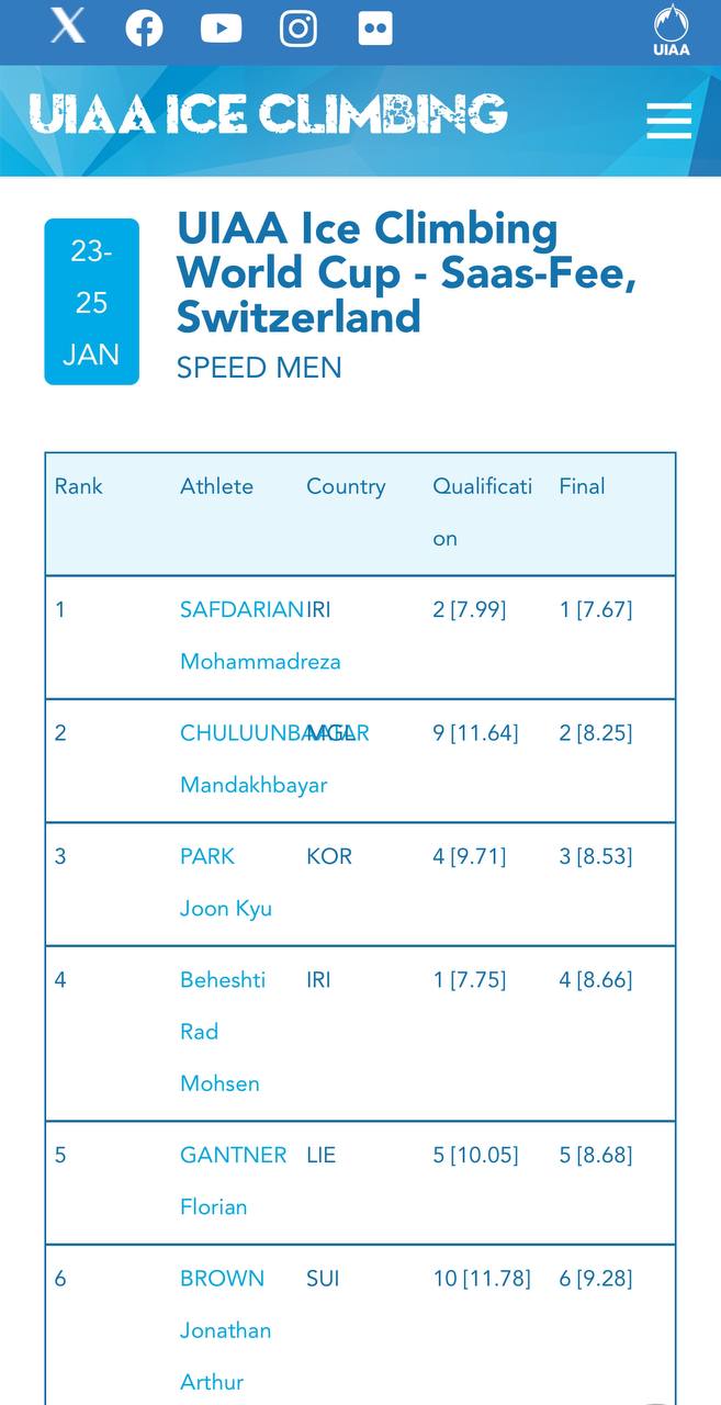 شب گذشته و دومین دوره از فصل مسابقات جام جهانی یخنوردی و اینبار در در شهر «ساسفی» سوئیس، «محمدرضا صفدریان» قهرمان یخنوردی ایران و جهان با ثبت برترین زمان مسابقات در ماده «سرعت»، به مدال طلا دست یافت و بر سکوی نخست ایستاد.