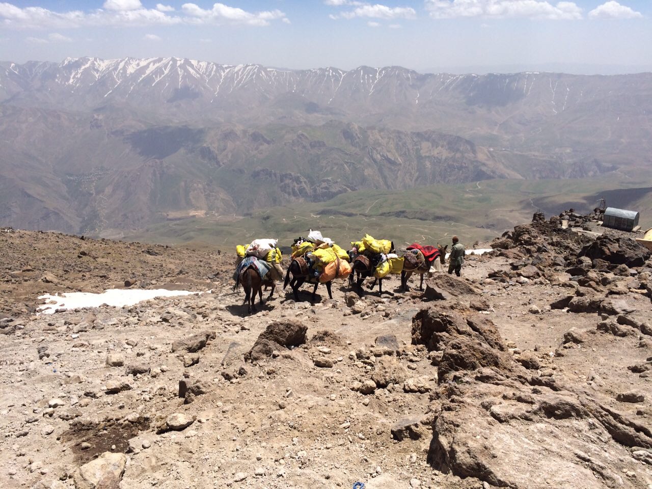 تخلیه زباله های برجای مانده از زمستان و بهار کوهنوردان در اطراف بارگاه سوم دماوند توسط عوامل کارگروه پناهگاه ها ...