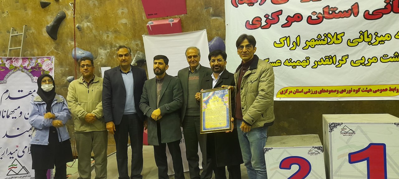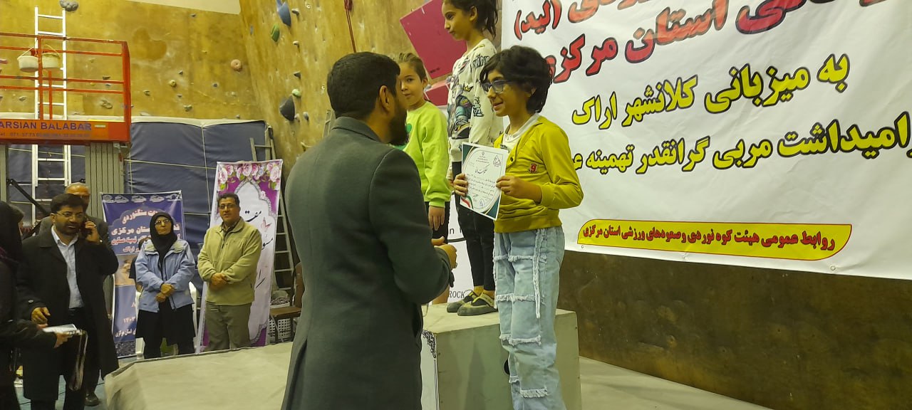هیئت کوهنوردی وصعودهای ورزشی به مناسبت دهه مبارک فجر انقلاب اسلامی و گرامیداشت مربی گرانقدر تهمینه عسگری مسابقات استانی سنگنوردی در رشته لید و رده سنی نونهالان، نوجوانان و جوانان در روزهای پنج شنبه ۴ و جمعه ۵ بهمن ماه برگزار کرد این مسابقات به میزبانی کلانشهر اراک با 80 شرکت کننده از شهرستانهای توابع استان ، به رقابت با هم پرداختند که نتایج ذیل حاصل گردید.