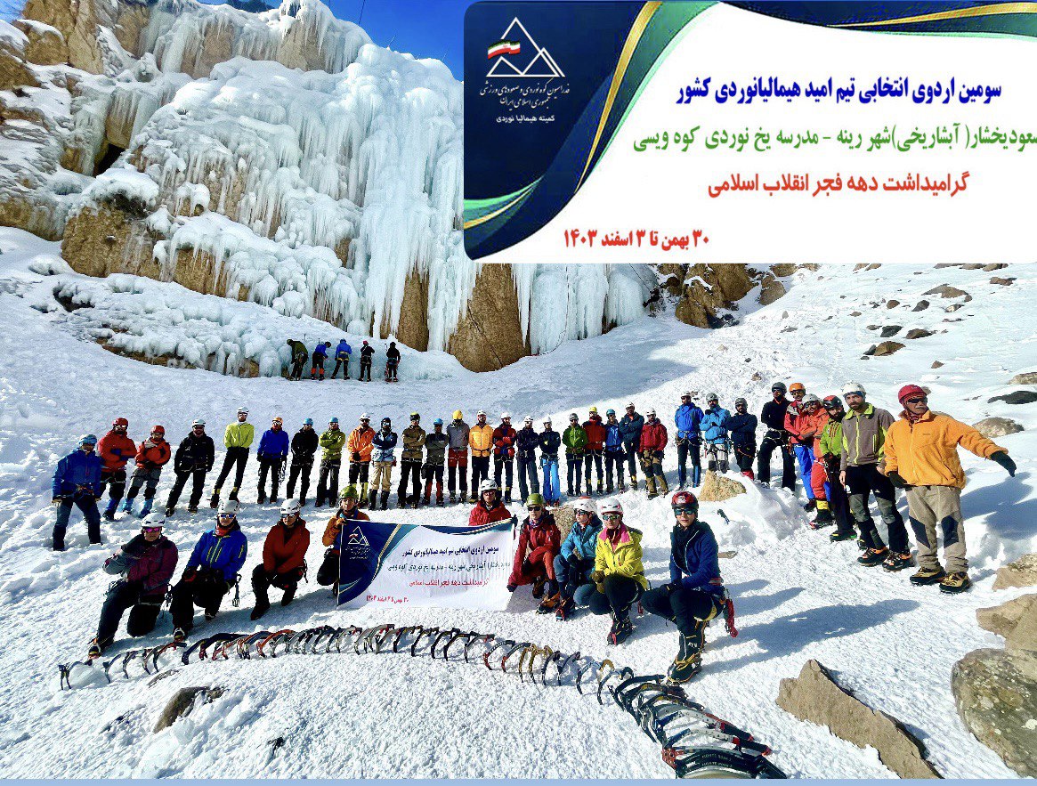 سومین اردوی استعدادیابی، آموزشی و توانمندسازی تیم ملی امید هیمالیانوردی کشور با حضور ۳۶ نفر از کوهنوردان راه یافته به این مرحله ، از تاریخ ۳۰ بهمن ماه تا ۳ اسفند در شهر رینه؛ مدرسه یخنوردی کوهویسی برگزار شد .