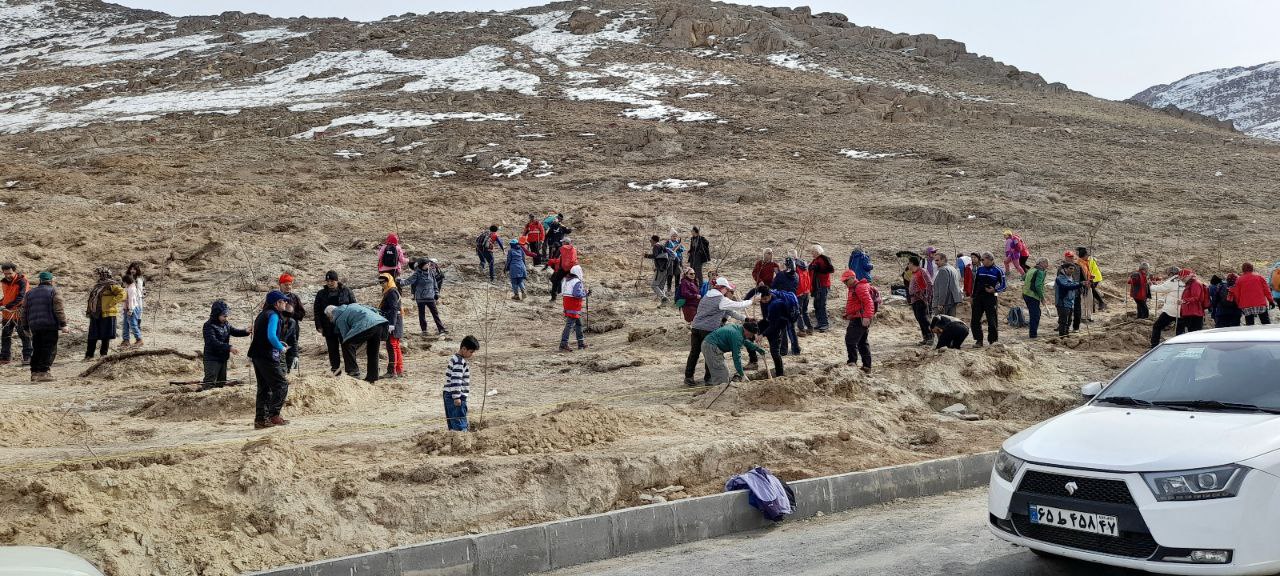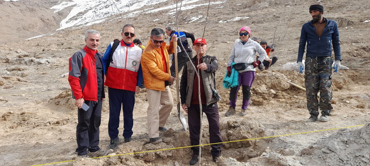 * بامشارکت همه کوهنوردان حاضر به تعداد ۵۰ اصله نهال در منطقه گردو کاشته شد