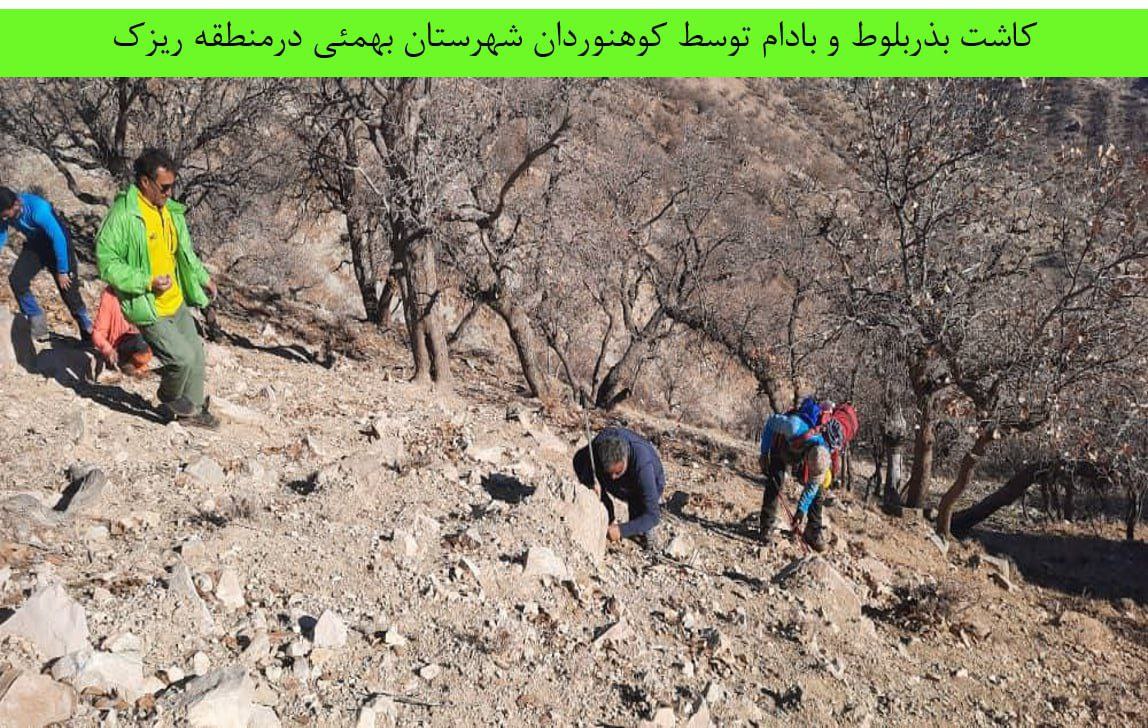 ۱۹- همایش کاشت بذر( بلوط- بادام- گیاهان دارویی) در منطقه ریزک شهرستان بهمئی به مناسبت بزرگداشت دهه فجر و هفته ملی هوای پاک در تاریخ ۱۲ بهمن ماه ۱۴۰۳
