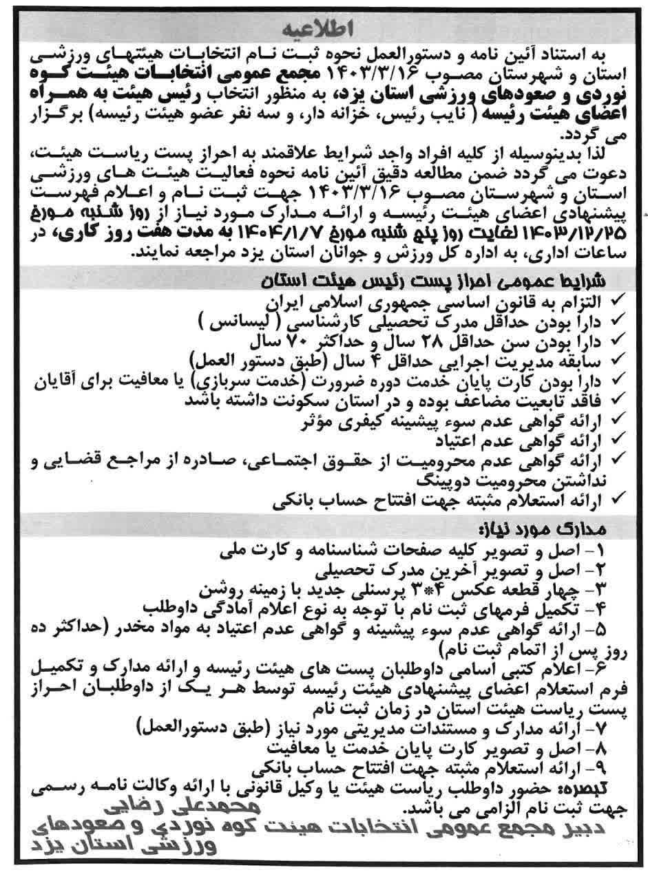 آگهی انتخابات هیئت کوهنوردی و صعودهای ورزشی استان «یزد»
