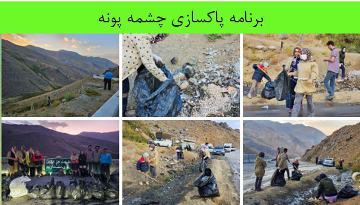 ۵- برنامه پاکسازی «چشمه پونه» به همت کمیته محیطزیست هیئت کوهنوردی، انجمن پرسیاوشان زاگرس و انجمن محیطزیستی نار و نارون
