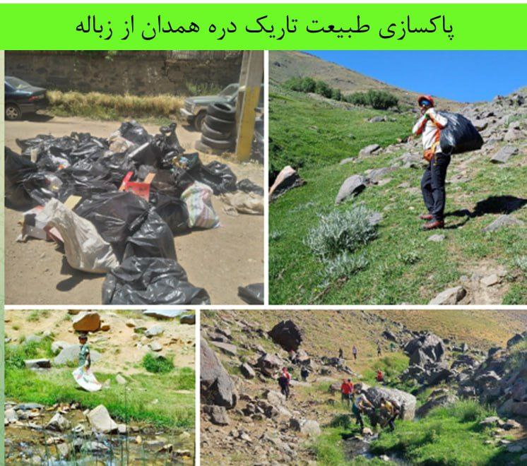 ۲-پاکسازی طبیعت تاریک دره همدان از زباله به دست دوستداران طبیعت