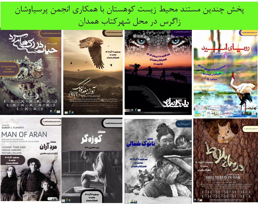 ۱۴- پخش چندین مستند با موضوع محیط زیست کوهستان در محل شهر کتاب همدان