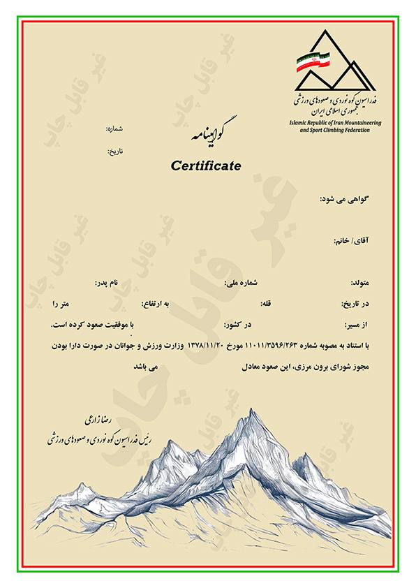 به آگاهی میرساند؛ کلیه افرادی که موفق به صعود قلل خارج از کشور میشوند، میتوانند برای دریافت تأییدیه صعود از طریق فدراسیون اقدام نمایند. در صورتی که مستندات ارائهشده توسط کمیته هیمالیانوردی فدراسیون تأیید شوند و صحت صعود احراز گردد، حکم تأییدیه صعود از سوی فدراسیون صادر خواهد شد.