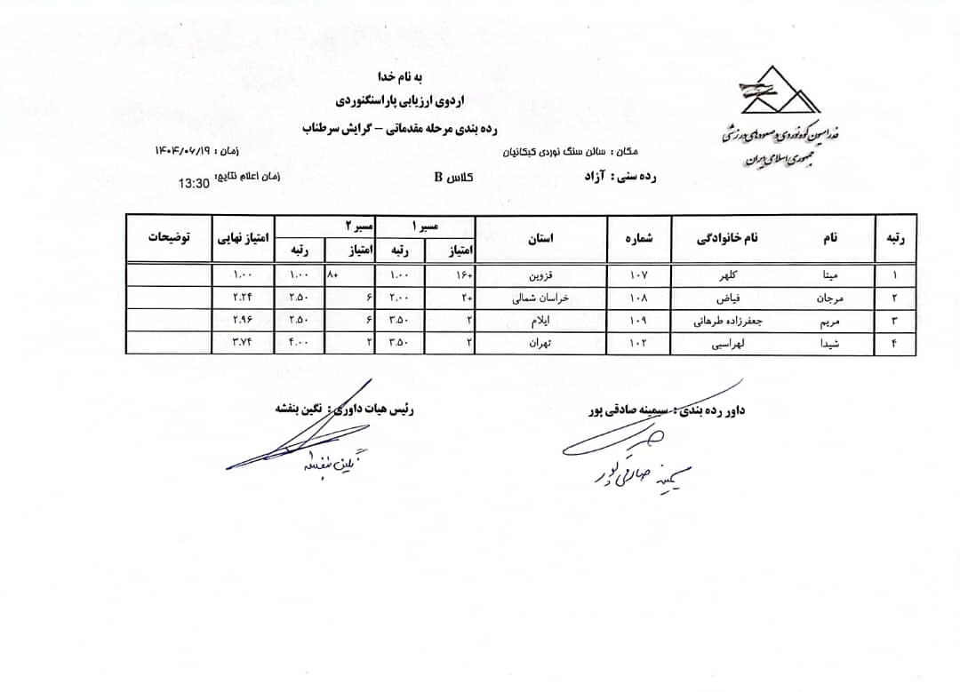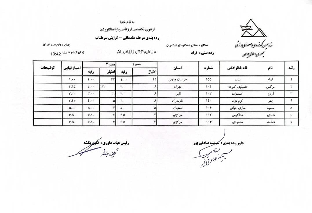 اردوی انتخابی تیم ملی پاراسنگنوردی گرایش سرطناب / رده سنی آزاد ـ بهمن 1404