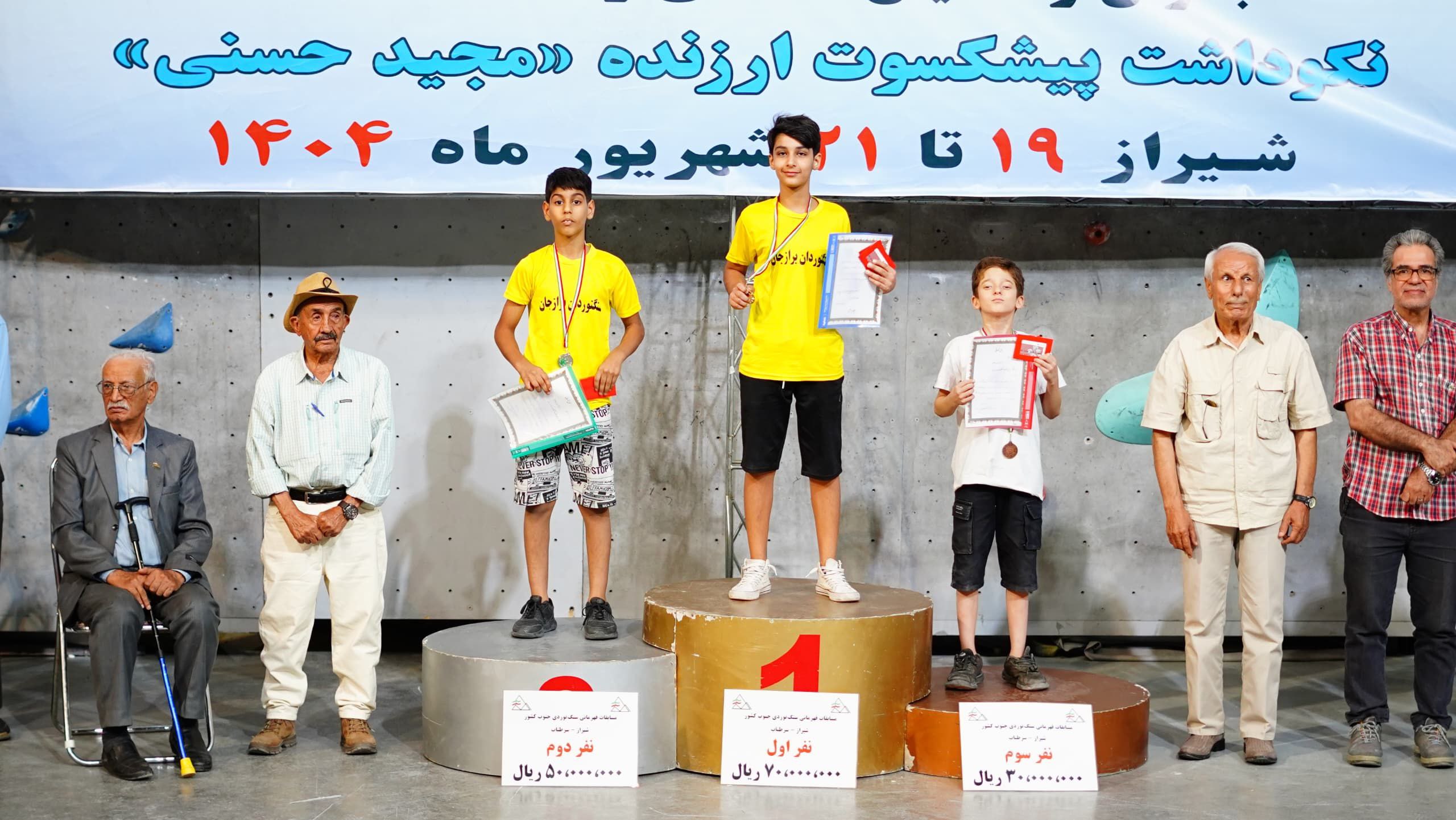 نفرات برتر بخش پسران مسابقات سنگنوردی قهرمانی جنوب کشور استان فارس، نکوداشت پیشکسوت ارزنده «مجید حسنی» در تمامی رده های سنی (۸ رده سنی) مشخص شدند.