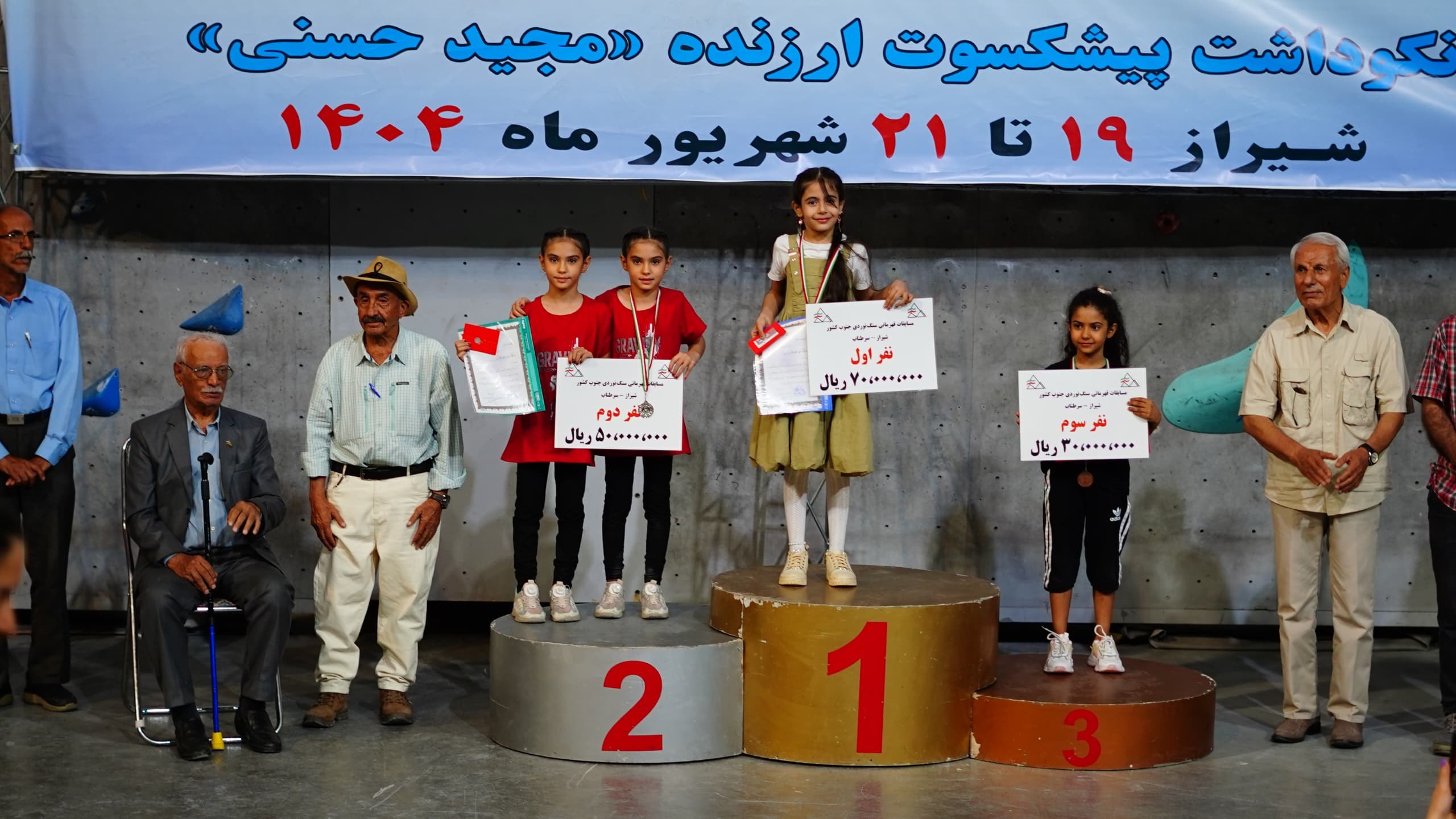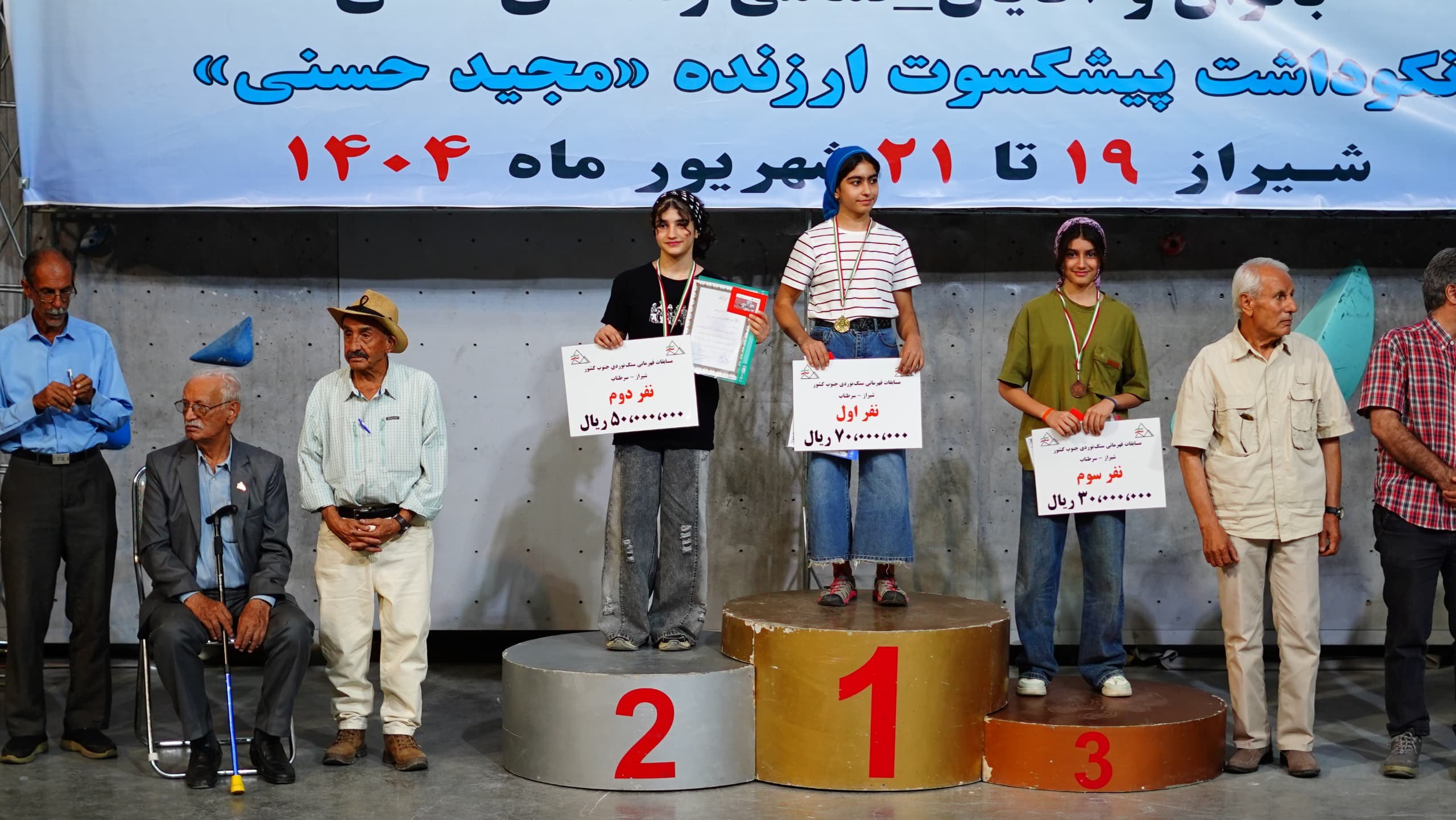 نفرات برتر بخش دختران مسابقات سنگنوردی قهرمانی جنوب کشور استان فارس، نکوداشت پیشکسوت ارزنده «مجید حسنی» در تمامی رده های سنی (۷ رده سنی) مشخص شدند.