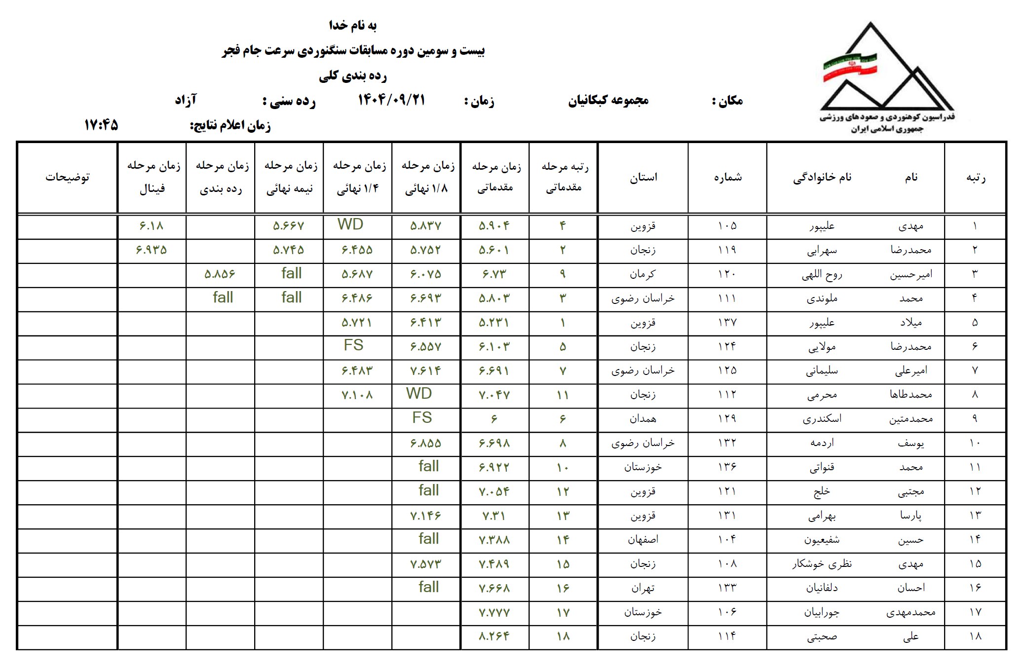 اسامی پذیرفتهشدگان هفتمین دوره بازآموزی سراسری طراحان صعودهای ورزشی آبان 1404 – اصفهان