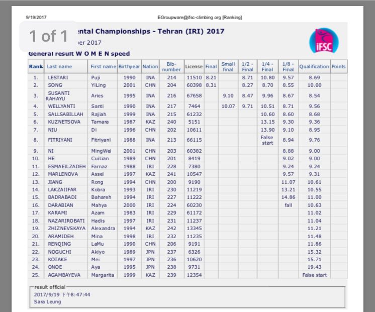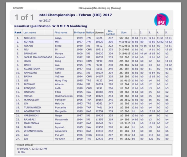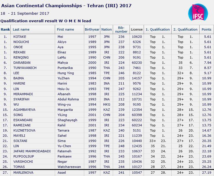 نتایج مسابقات و پخش زنده اینترنتی بیست و پنجمین دوره مسابقات سنگ‌نوردی قهرمانی آسیا / به روز می‌شود ...