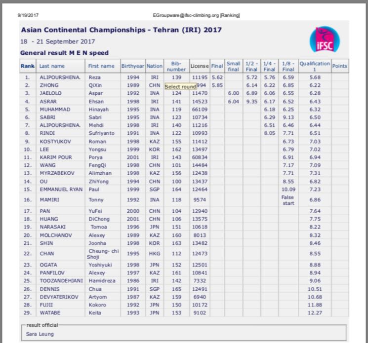 نتایج مسابقات و پخش زنده اینترنتی بیست و پنجمین دوره مسابقات سنگ‌نوردی قهرمانی آسیا
