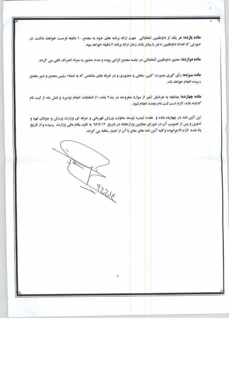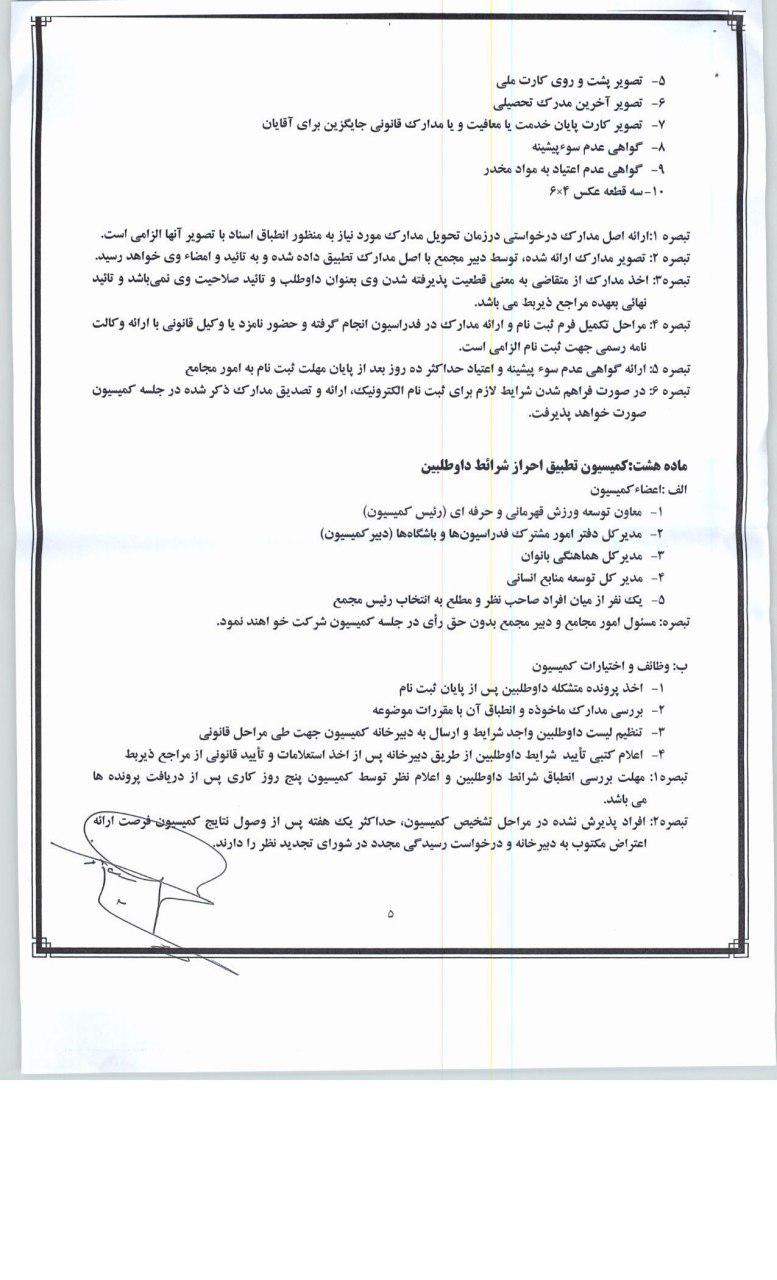 همچنین شرایط احراز داوطلبین ریاست فدراسیون ، مدارک موردنیاز جهت ثبت نام داوطلبین و آیین نامه شرایط احراز و چگونگی انتخاب رئیس فدراسیونهای ورزشی جهت بهره برداری اعلام میشود.