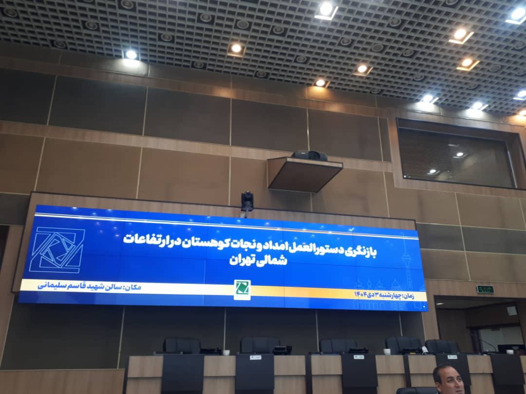 جلسه بررسی و تبادلنظر پیرامون آییننامه تیمهای امداد و نجات شهر تهران، روز چهارشنبه ۳ دیماه 1404، در سالن مدیریت بحران شهر تهران برگزار شد.