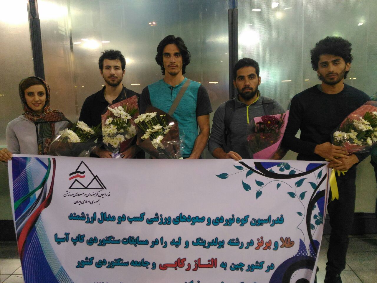 تیم اعزامی کشورمان به مسابقات کاپ سنگ نوردی آسیا، با استقبال مسئولین فدراسیون به میهن بازگشت و از «الناز رکابی» مدال آور طلایی و برنزی این رقابت ها، در بدو ورود، با اهدای سکه تقدیر شد.