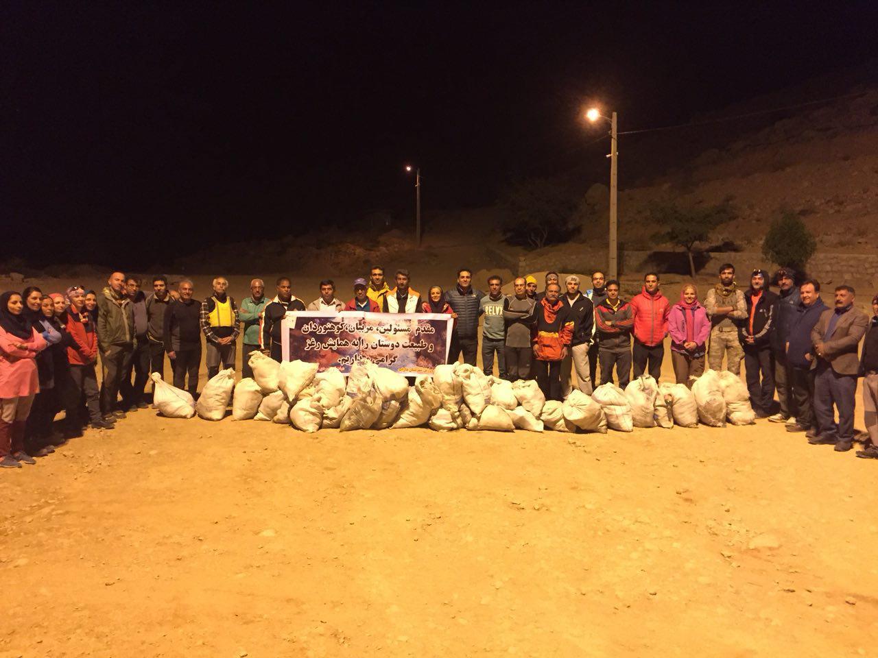 ساعت ۵ صبح حرکت به سمت سرچشمه به تعداد ۲۲ نفر بعد از پیمایش مسیر کوه‌پیمایی و رسیدن به سرچشمه و تقسیم تجهیزات ۹نفر از اعضا برای پیمایش تنگ و پاکسازی و بسته‌بندی زباله‌ها تا حد امکان و ثابت‌گذاری طناب‌ها اعزام گردیدند که تا بالای آبشار تاریک این مهم محقق گردید و ساعت ۱۸ به انتهای دره رسیدند. باقی نفرات نیز شروع به پاکسازی سرچشمه نمودند که در نهایت با حجم ۳۰گونی با حدود وزن کلی ۳۰۰کیلوگرم جمع‌آوری شد، تیم ما تصمیم داشت زباله‌ها را در سرچشمه دپو کند تا در زمان دیگری توسط چهار‌پا به سمت پارکینگ حمل گردد. آقای بهرامی و پیشکسوتان باشگاه که همیشه الگو و انگیزه بسیاری به ما می دهند بعد از کارگذاشتن تابلو محیط‌زیستی ابتدای مسیر کوه‌پیمایی به ما ملحق شدند، آقای بهرامی فرمودند همت کنیم بارها را بر روی کول خود حمل کنیم به سمت سرچشمه، تمامی دوستان با روی گشاده پذیرفتند و تمام زباله‌ها با همت و تلاشی مثال زدنی با ۳ساعت کوه‌پیمایی ساعت ۱۵ به پارکینگ منتقل شد.