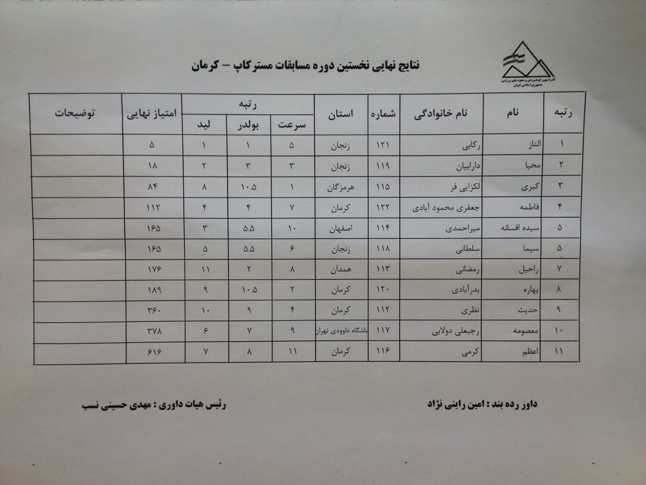 زنجان ◀️ نتایج اولین دوره مسابقات «مسترکاپ» / بخش بانوان/ کرمان