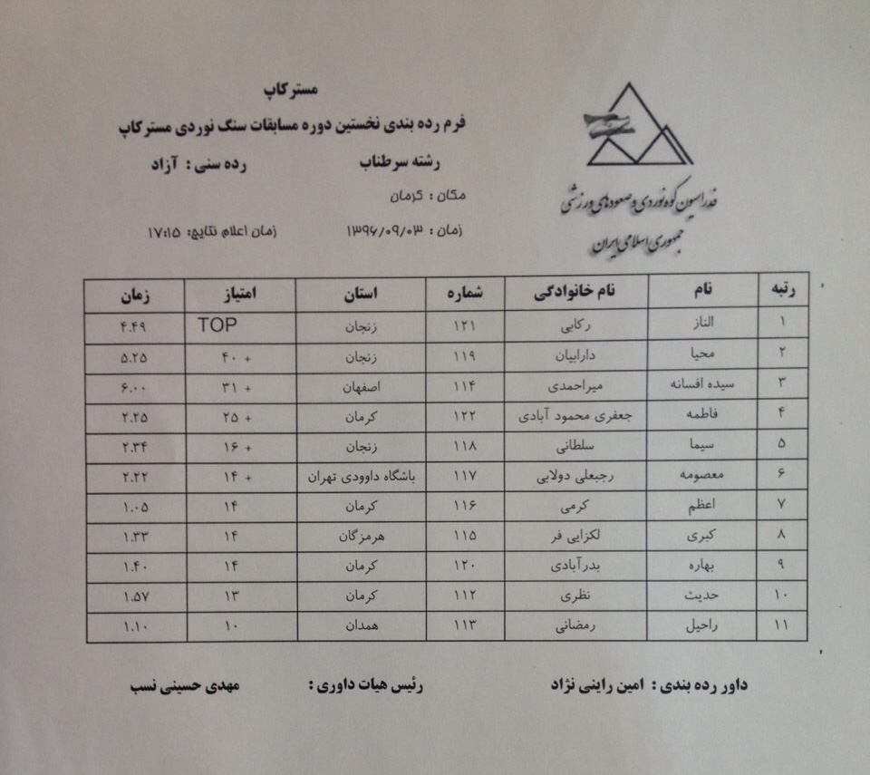 : 🔵نتایج رقابت های ماده «سرطناب»: - مقام اول: الناز رکابی